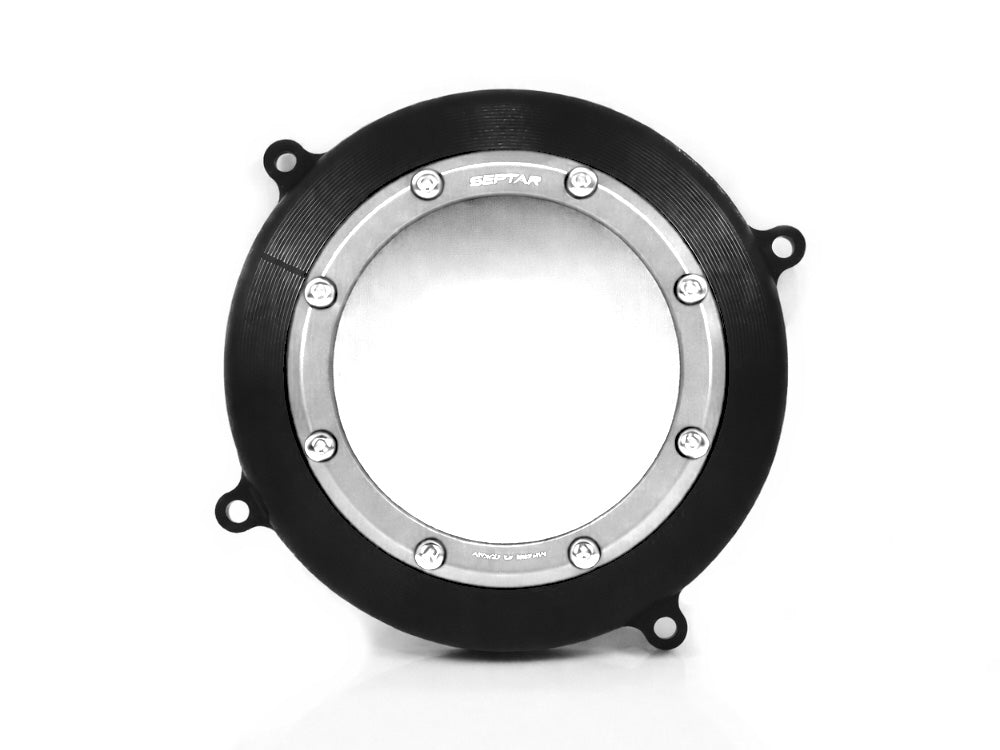 Carter frizione interamente ricavato dal pieno tramite macchinari CNC dotato di vetro trasparente.